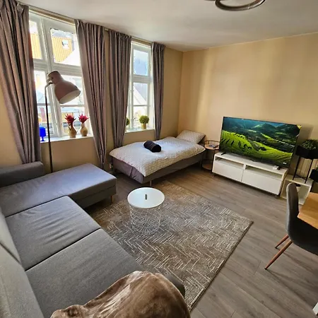 Apartament posiada również pełnowymiarową kuchnię. Goście mogą zjeść posiłek w Amalies Hage, w odległości krótkiego spaceru od obiektu noclegowego. Dworzec autobusowy Bergen stasjon znajduje się jedynie 5 min piechotą od 1-pokojowego apartamentu.